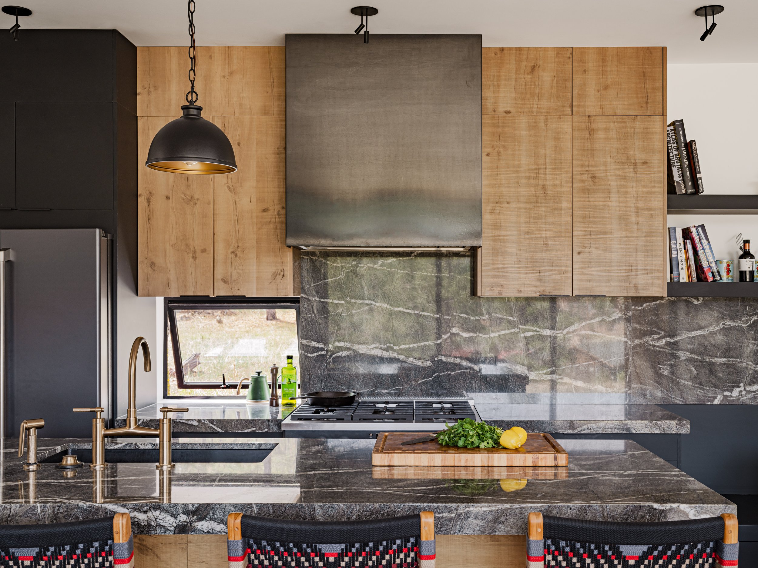 Nestled in the tranquil, forested outskirts of Greer, AZ, this modern cabin serves as the ultimate retreat for a Phoenix restauranteur couple seeking a serene escape. Combining sleek, contemporary design with the rustic charm of nature, this cabin offers a perfect blend of comfort and utility. Floor-to-ceiling windows provide breathtaking views of nearby mountains, while the open-concept living space invites relaxation and rejuvenation. With its chef’s kitchen, cozy fireplace, and spacious redwood outdoor deck carved out of the dark exterior metal skin, this retreat is an idyllic sanctuary for unwinding, reconnecting with nature, and exploring culinary ideations!
